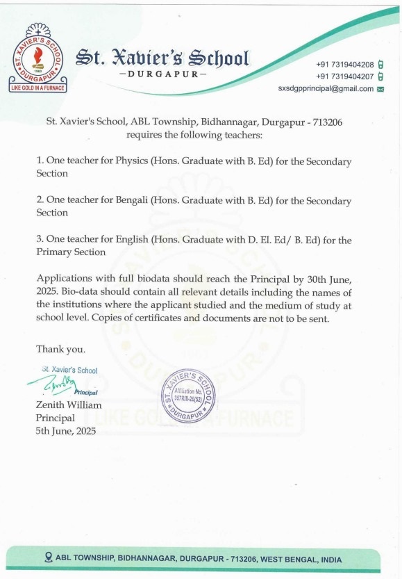 St. Xavier’s School Durgapur, has been promoting holistic education and shaping young minds to face life’s challenges and to succeed in today’s world.