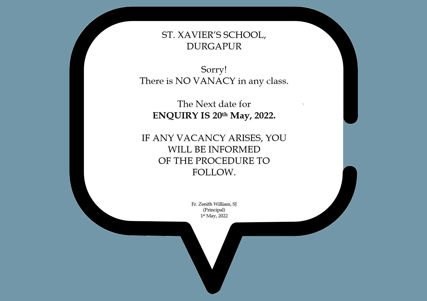 There is NO VACANCY in any class. The next date of ENQUIRY IS 20th May 2022.